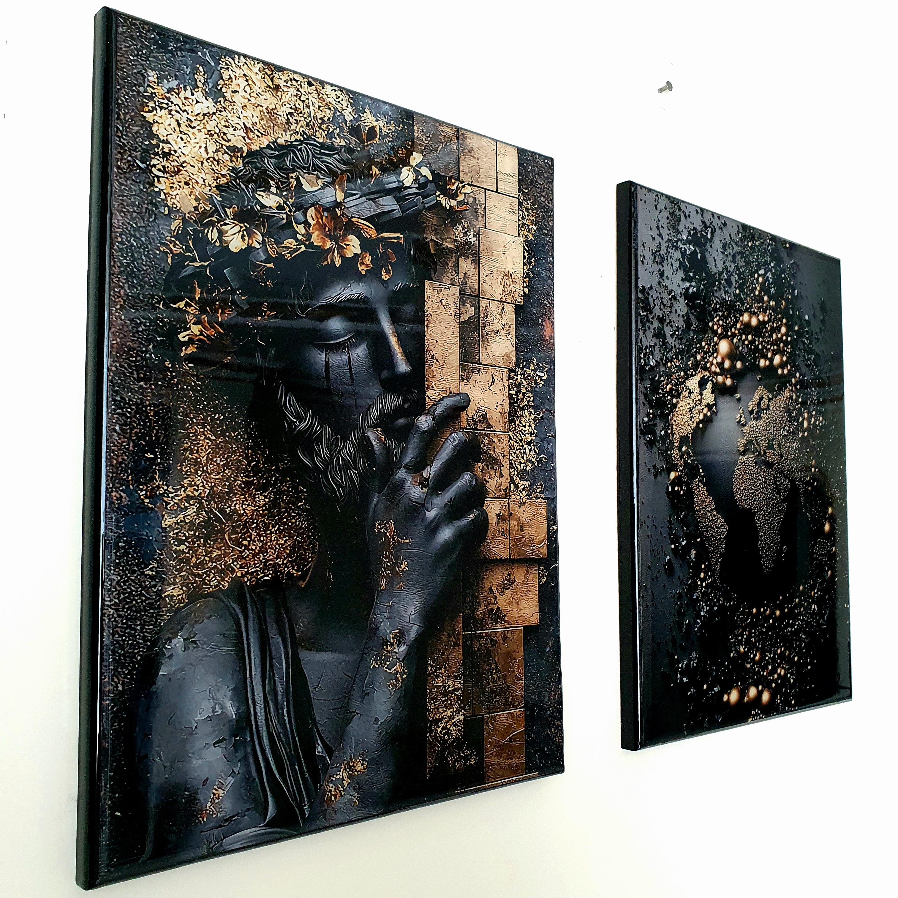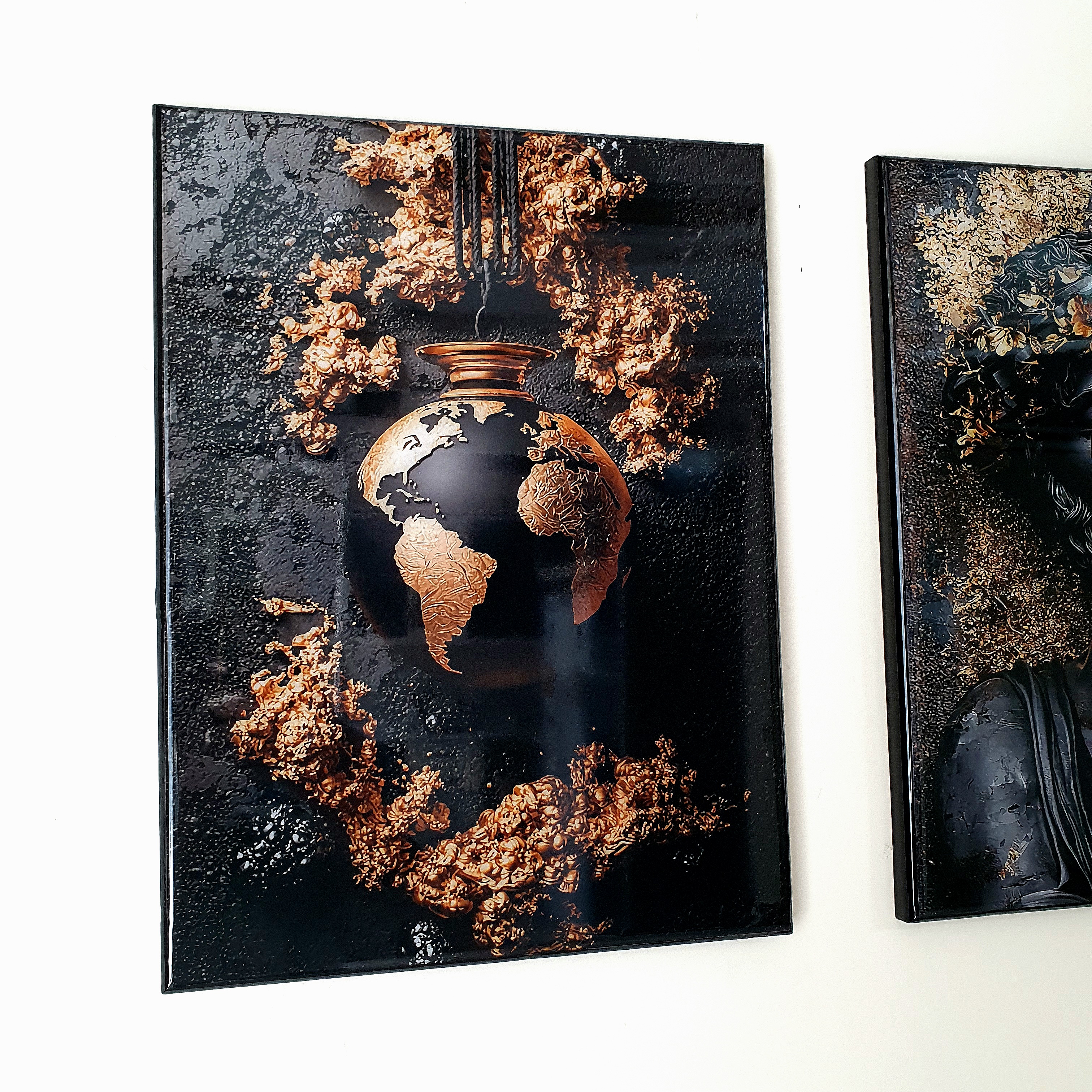 🎨 ترکیب عمیق رنگهای مشکی و طلایی در این اثر هنری، زیبایی، قدرت و جذابیت مدرن رو به فضای شما میاره.