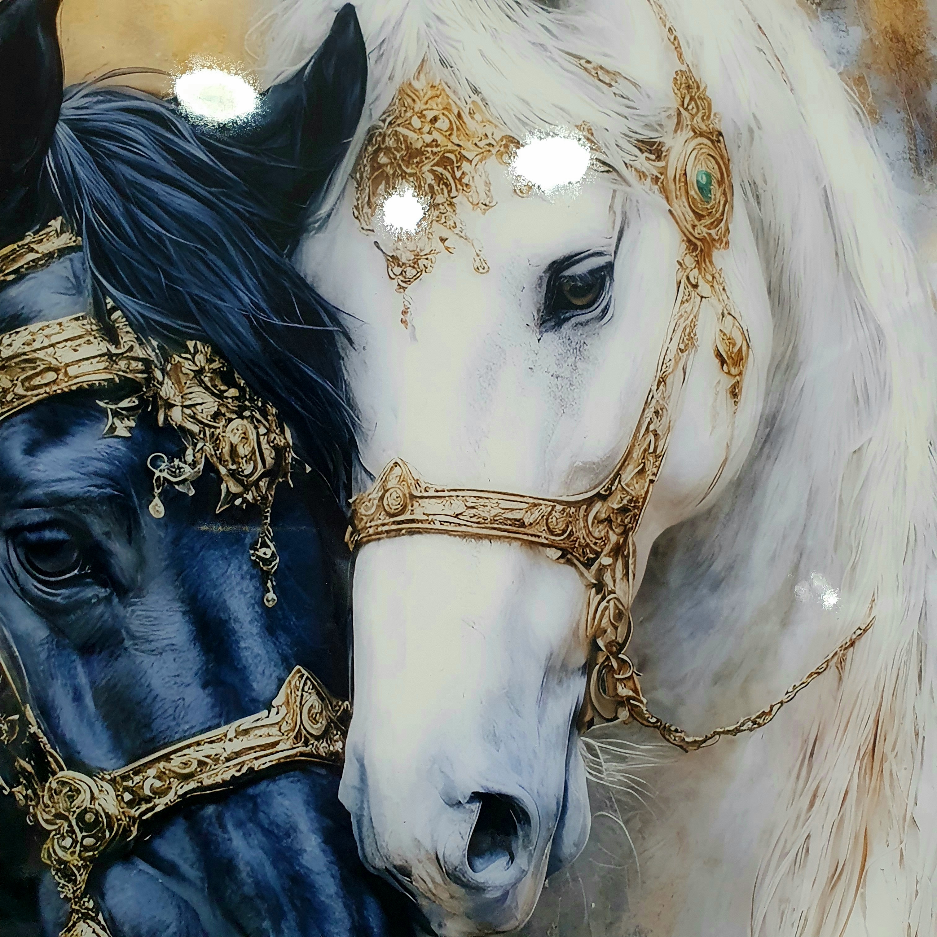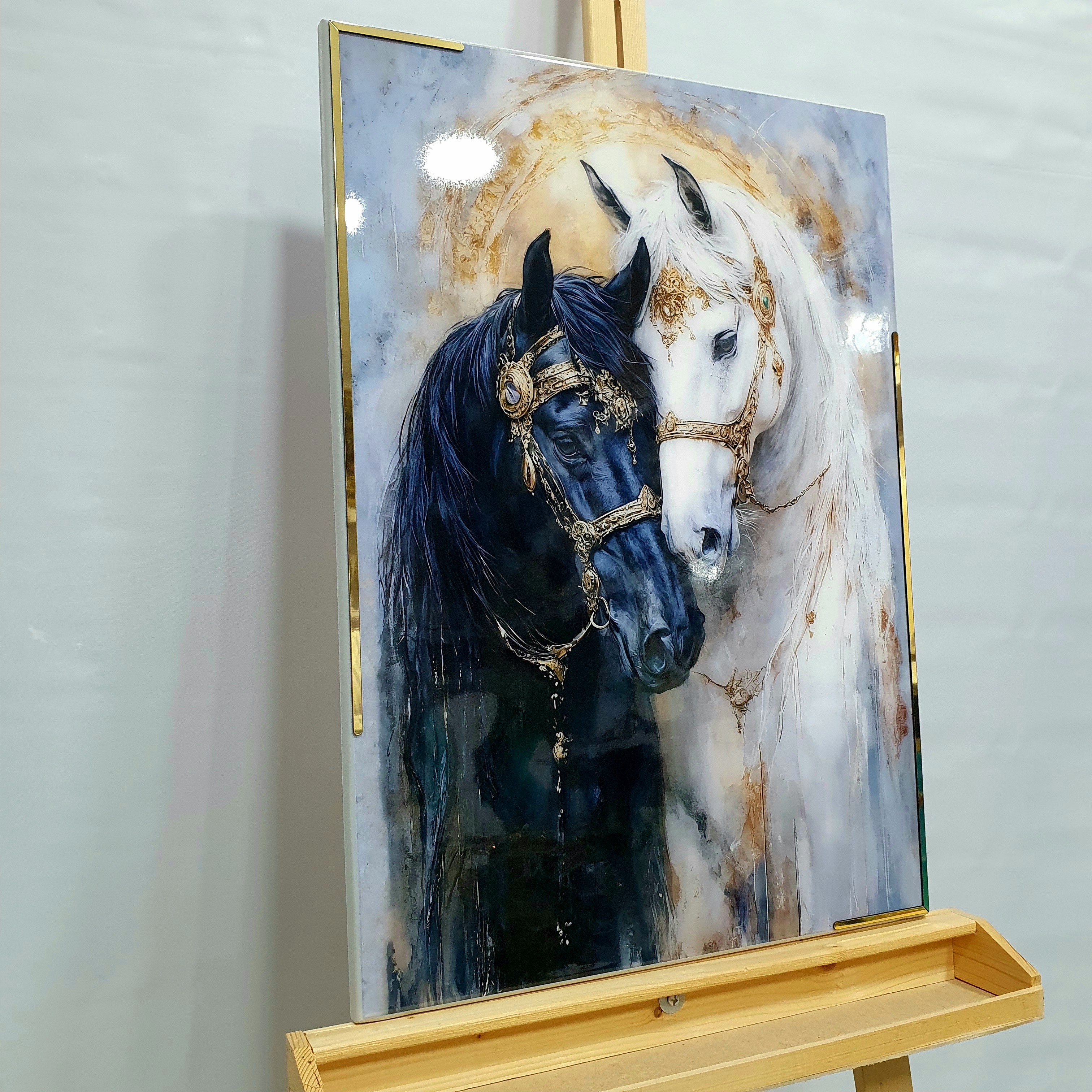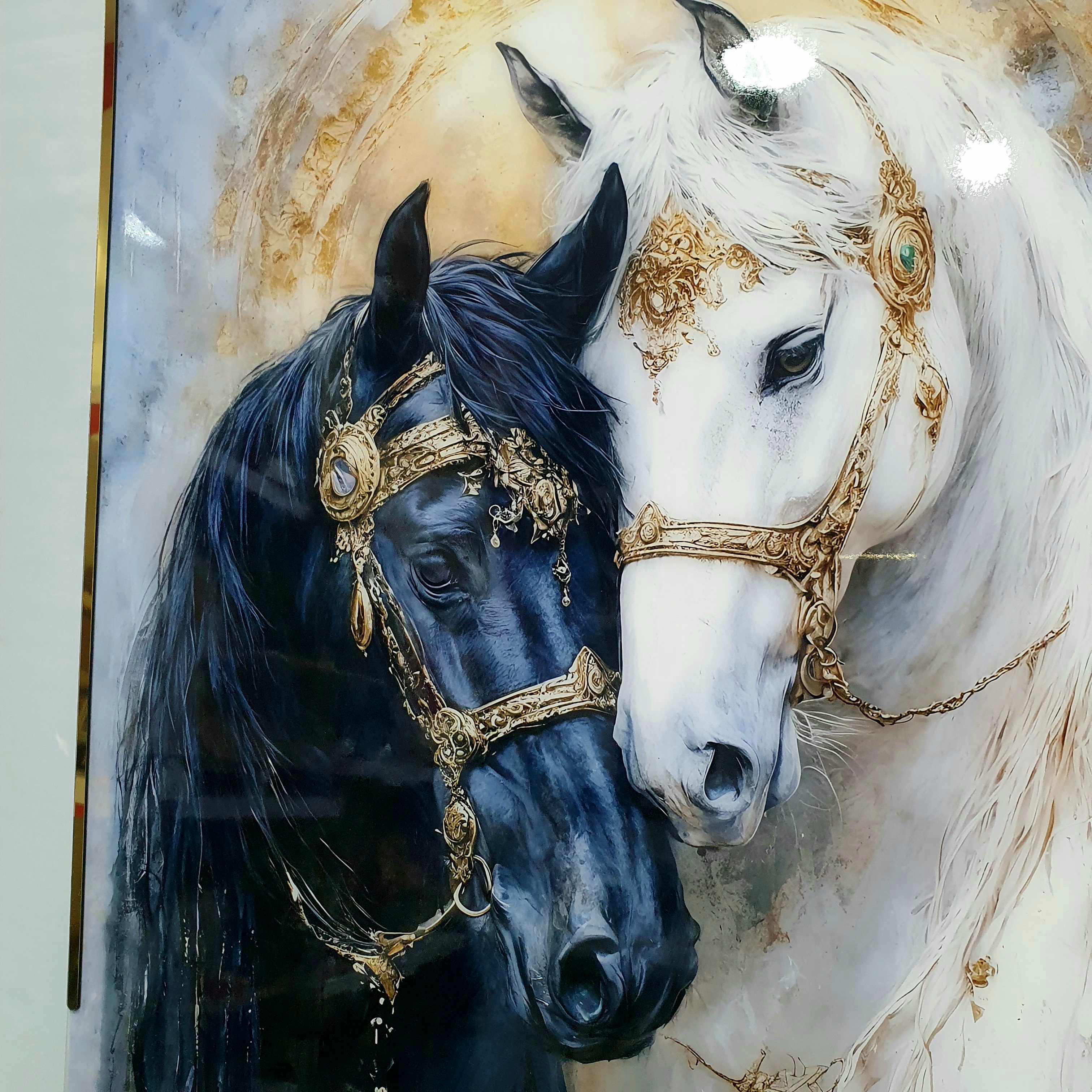 اسب سپید نشانه آرامش، دیگری سیاه چون شکوه و قدرت.