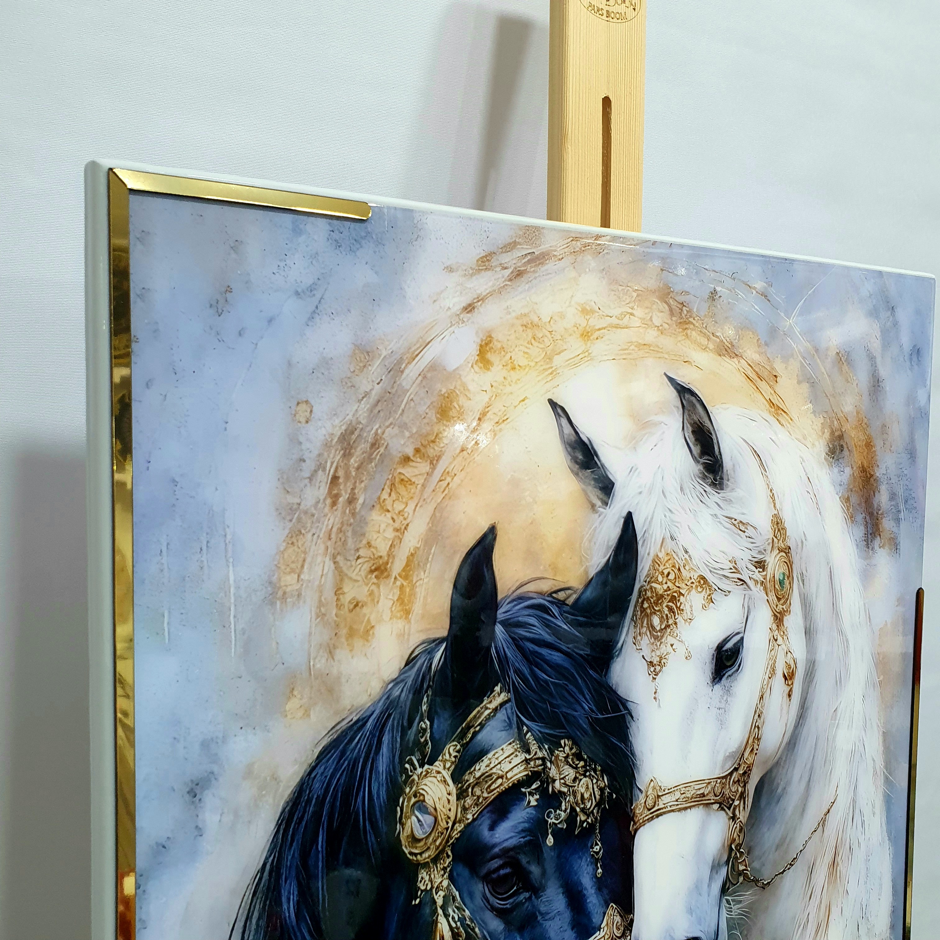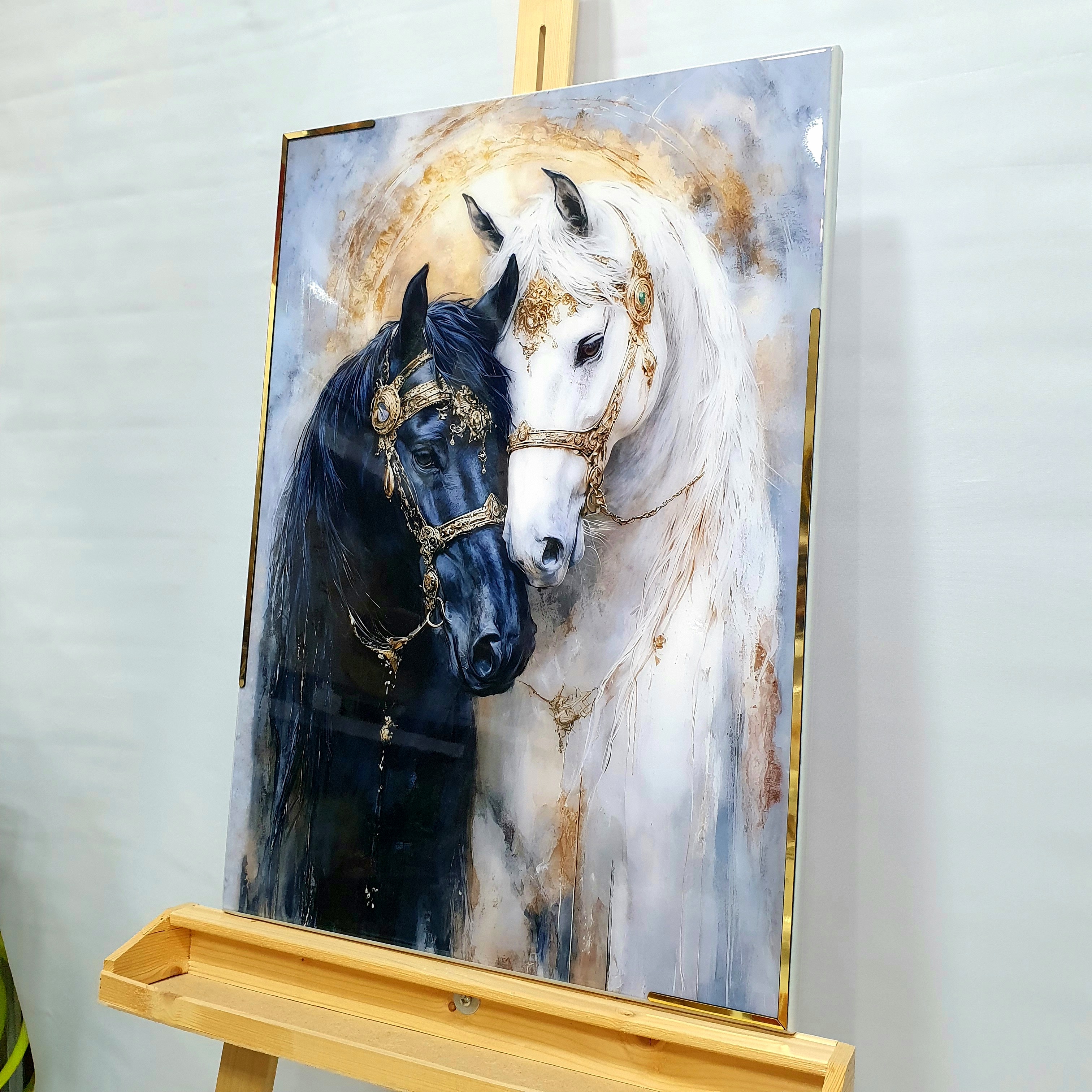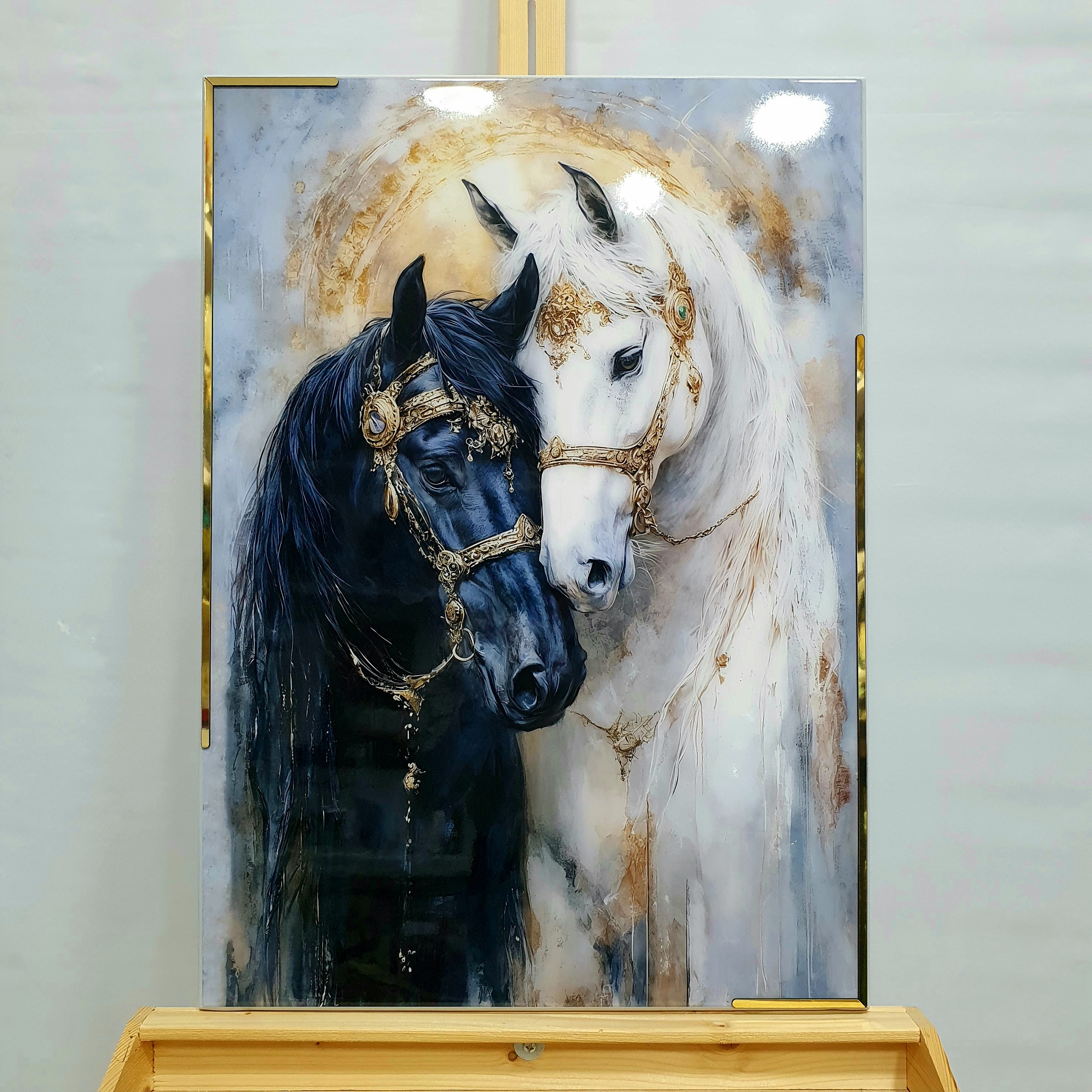 اسب سپید نشانه آرامش، دیگری سیاه چون شکوه و قدرت.