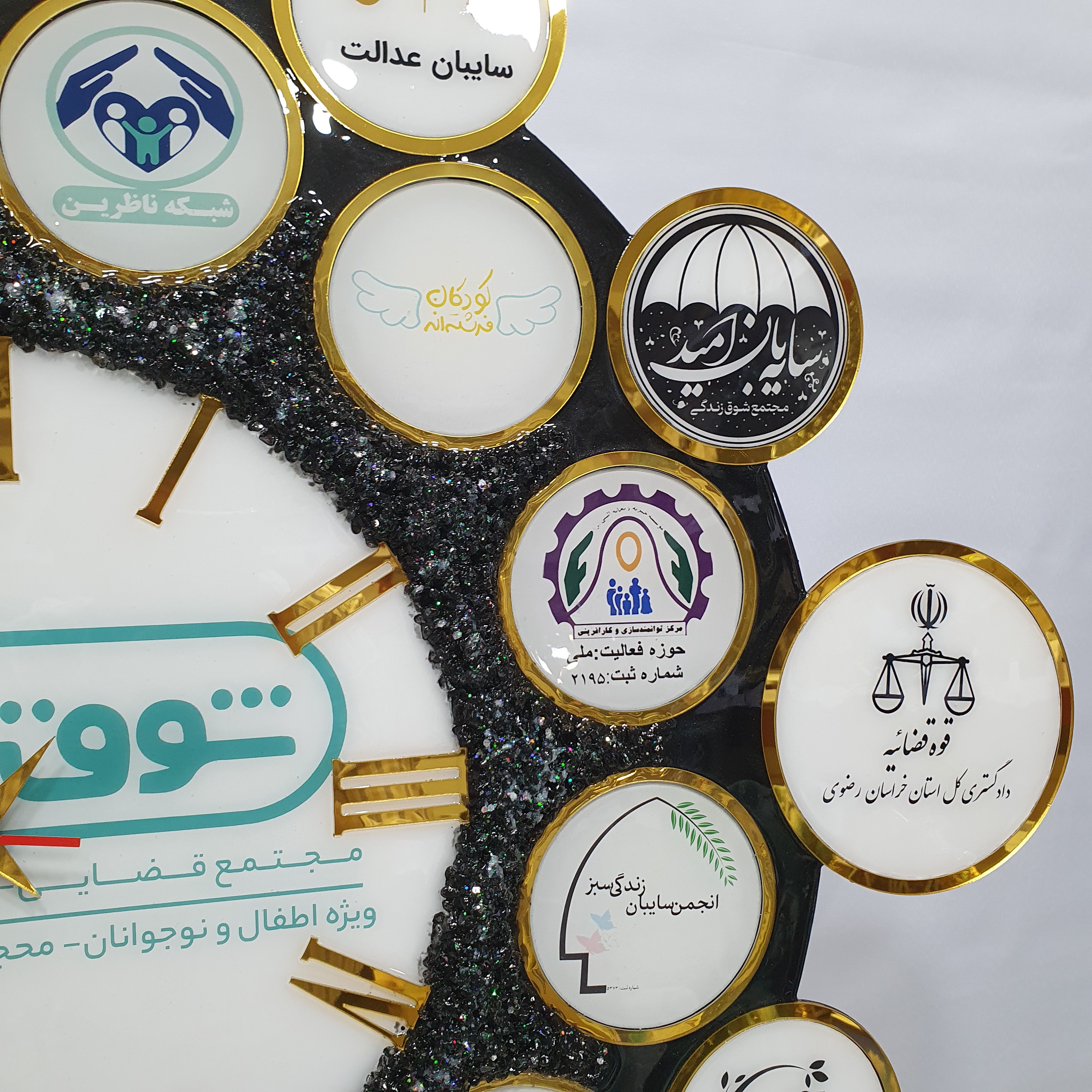 ساعت دیواری رزینی اختصاصی، ساختهشده برای مجمع قضایی دادگاه و دادسرای عمومی و انقلاب مشهد؛